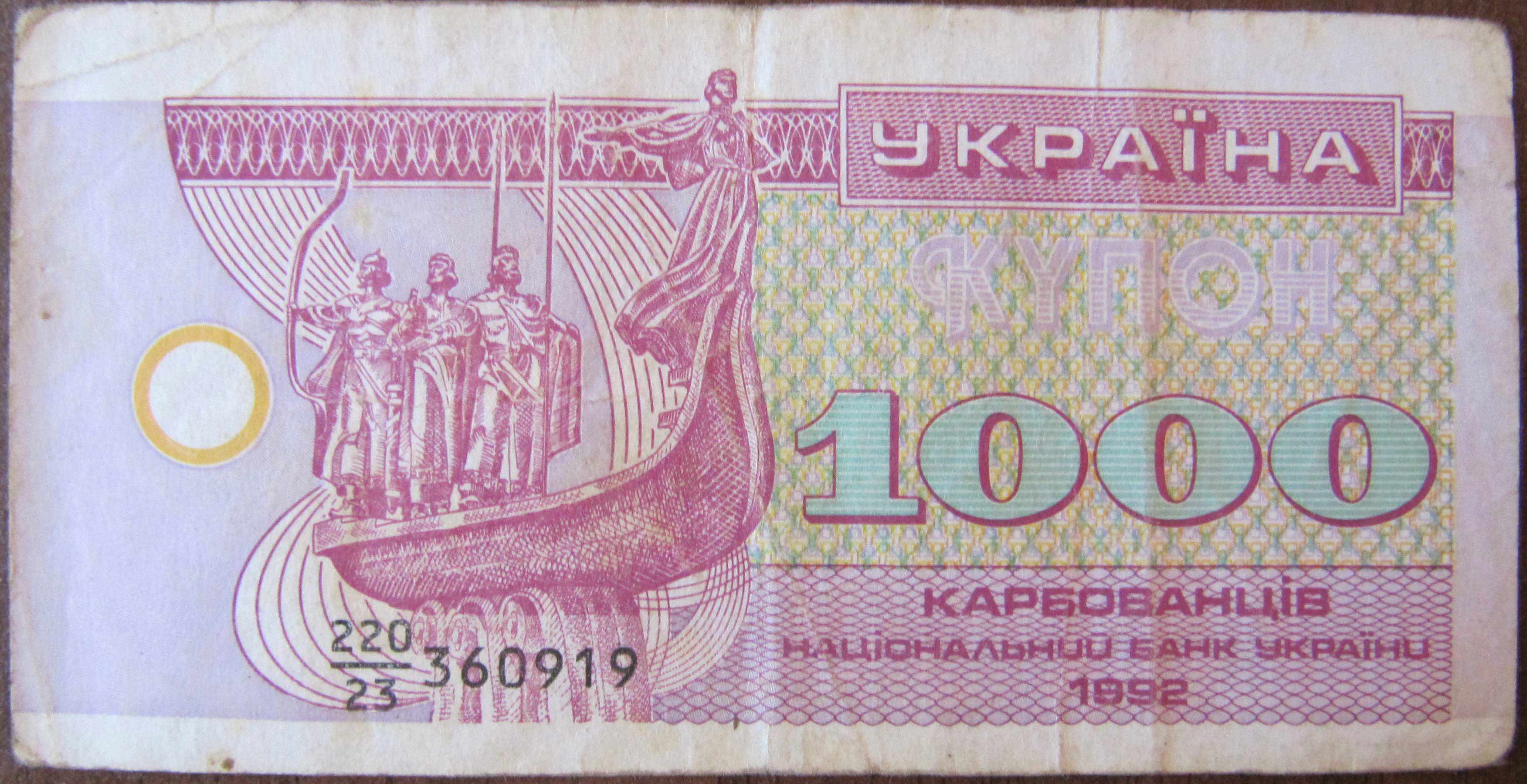 в левой части банкноты расположен памятник в честь 1500-летия основания Киева. Братья Кий, Щек и Хорив стоят на корме, сестра Лыбедь в носовой части ладьи. Под памятником - серийный номер. В правой части банкноты - надпись "УКРАЇНА", номинал и дата эмиссии.