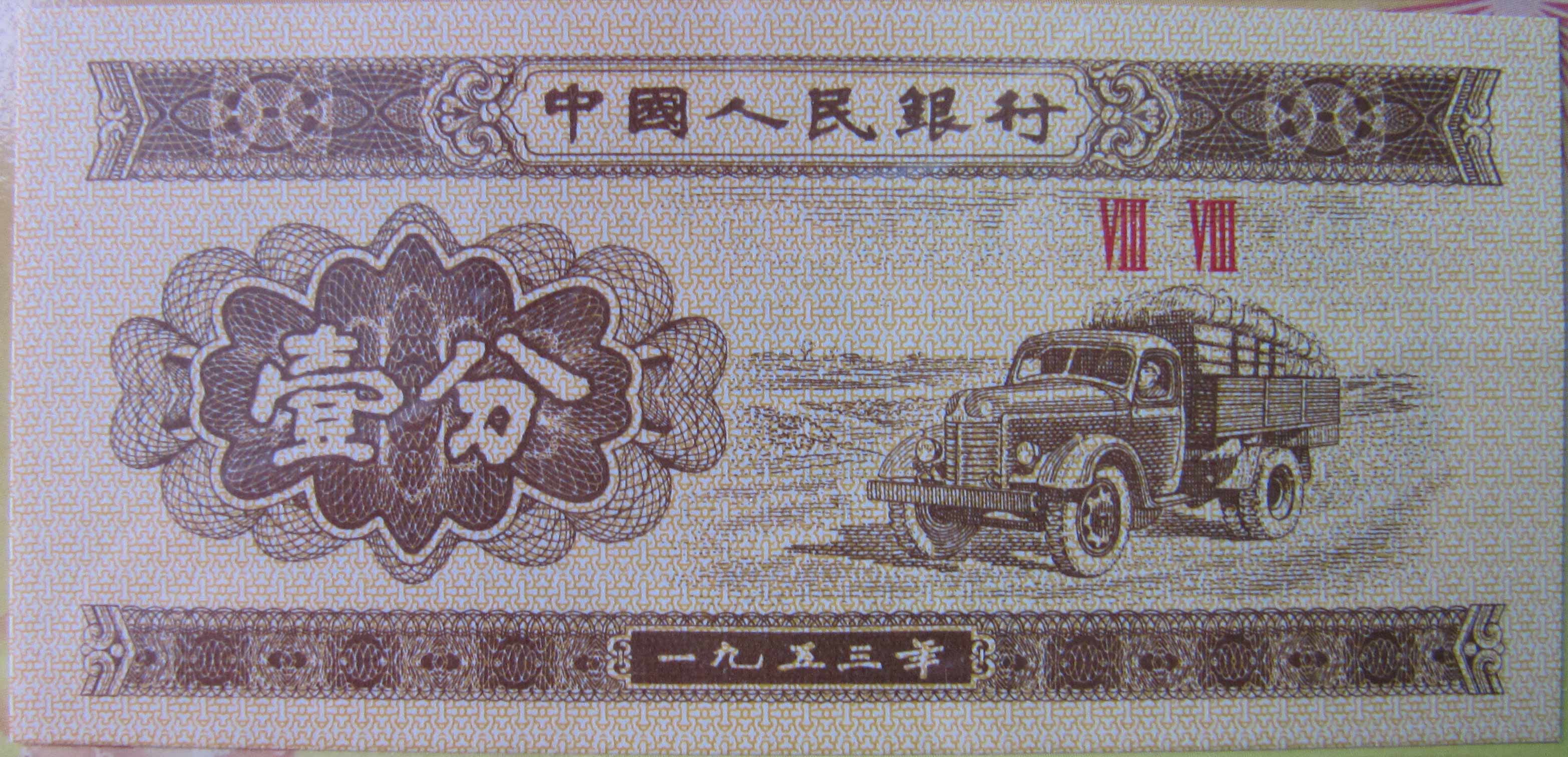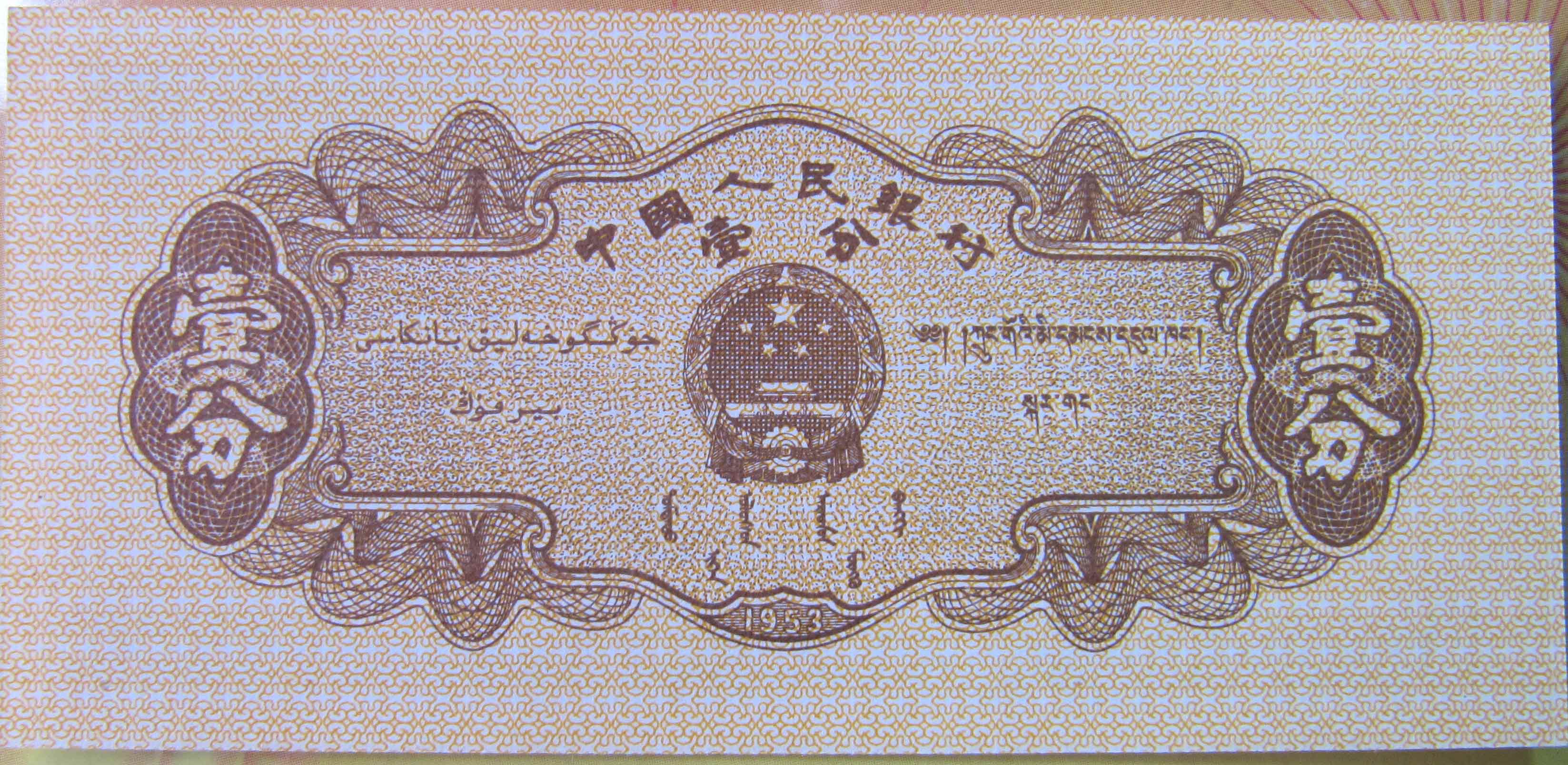 Опис зворотньої сторони:герб КНР и номинал банкноты с двух сторон. Надписи на четырёх языках - (чжуанском, монгольском, уйгурском, тибетском), являющимися официальными в автономных районах Китая.