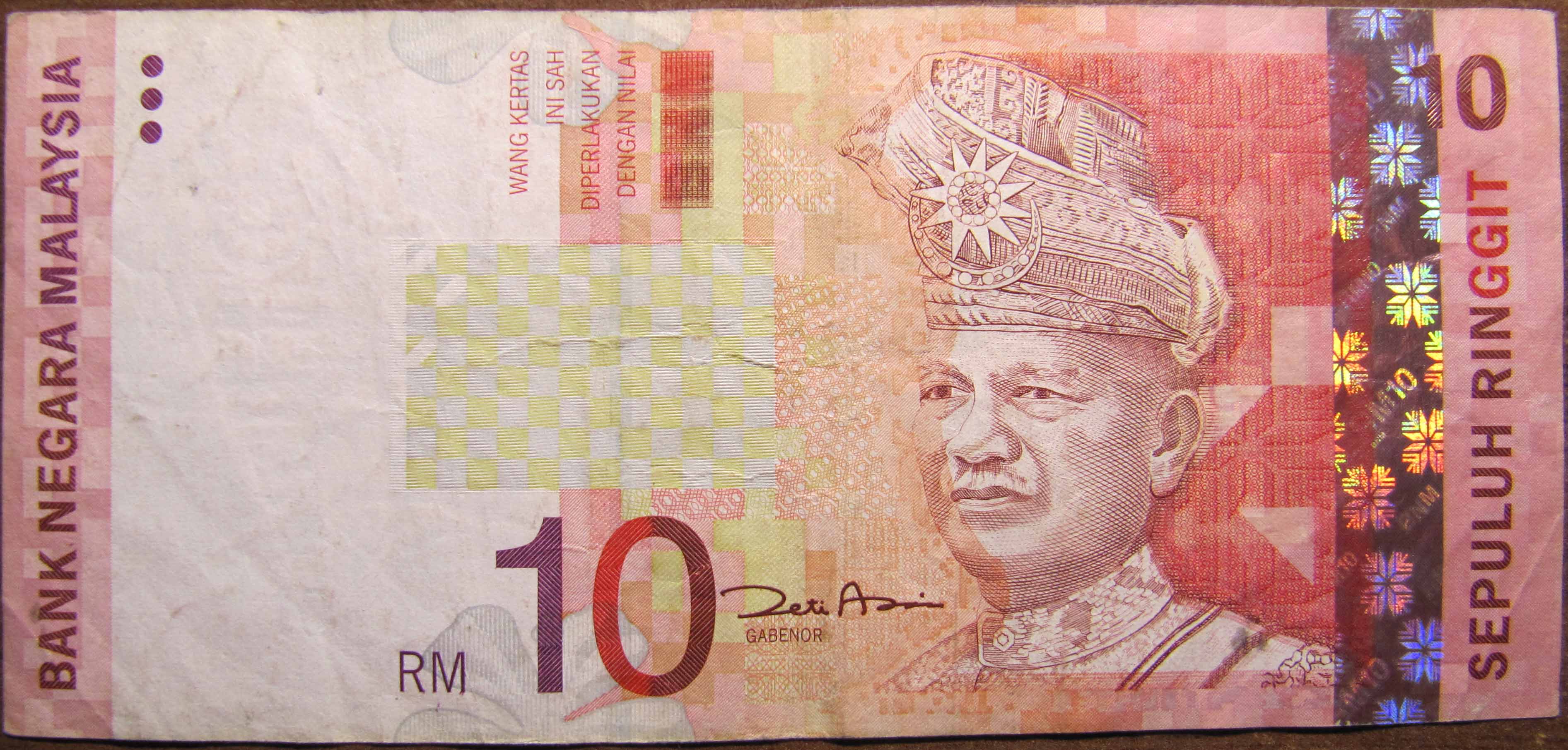 в правой части банкноты – портрет Тунку Абдул Рахмана (1895 – 1960), первого главы правительства Федерации Малайзия (13 сентября 1957 – 1 апреля 1960 гг.), справа от портрета номинал вертикально: SEPULUH RINGGIT. Внизу, на орнаментированном фоне, поверх стилизованного цветка гибискуса – номинал " RM10" и подпись управляющего банком. В левой части банкноты вертикальная надпись: BANK NEGARA MALAYSIA (ЦЕНТРАЛЬНЫЙ БАНК МАЛАЙЗИИ), в правом верхнем углу – номинал цифрой "10".