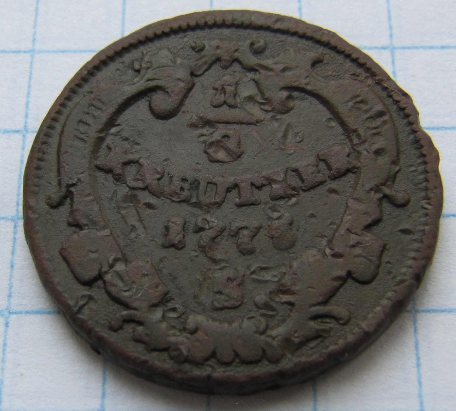 Аверс:номинал 1/2 KREUTZER, год чеканки монеты и знак монетного двора - внутри каллиграфически оформленного щитка.