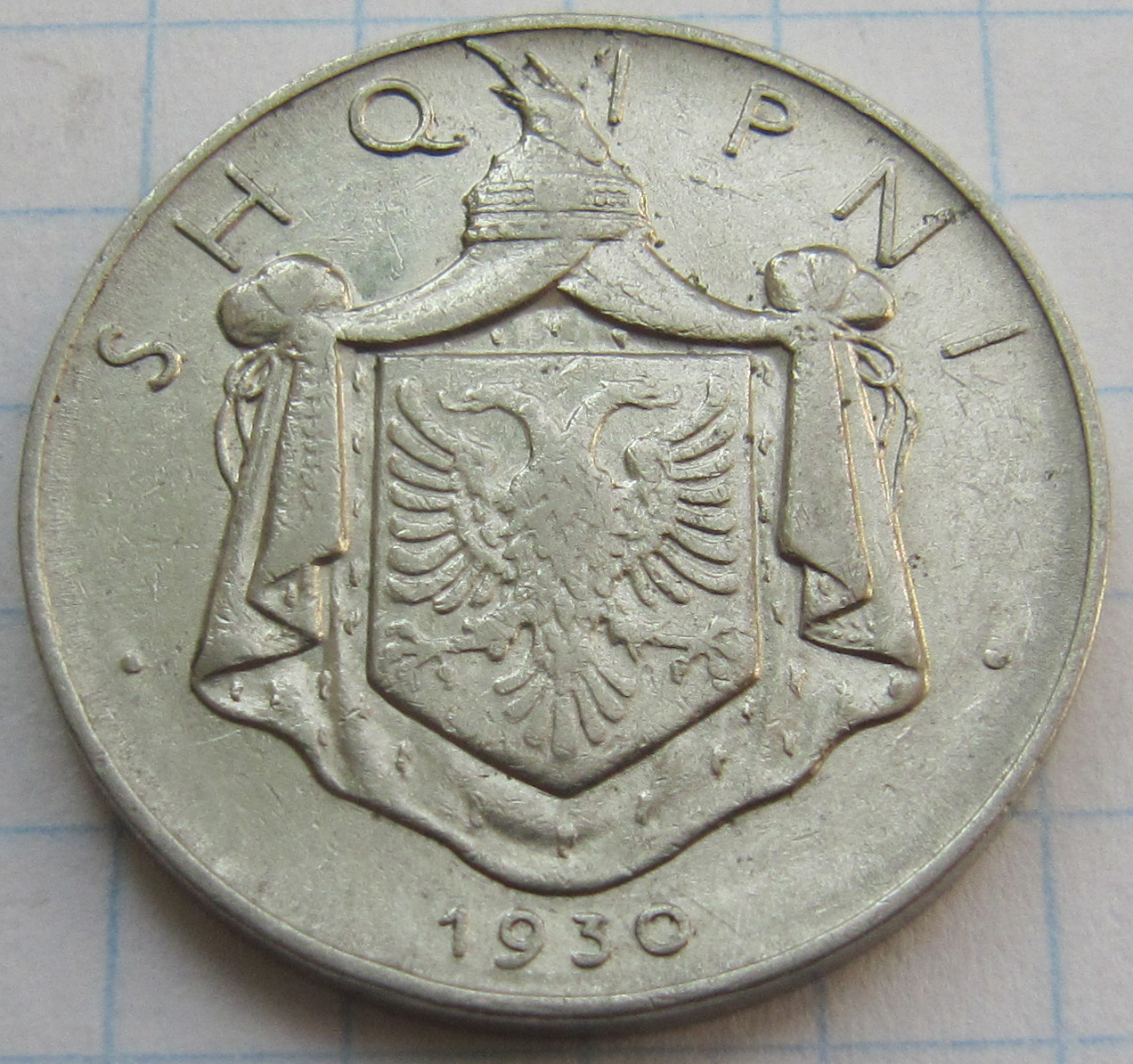 Реверс:герб королевства Албании, сверху по кругу надпись: SHQIPNI, снизу год чеканки монеты.