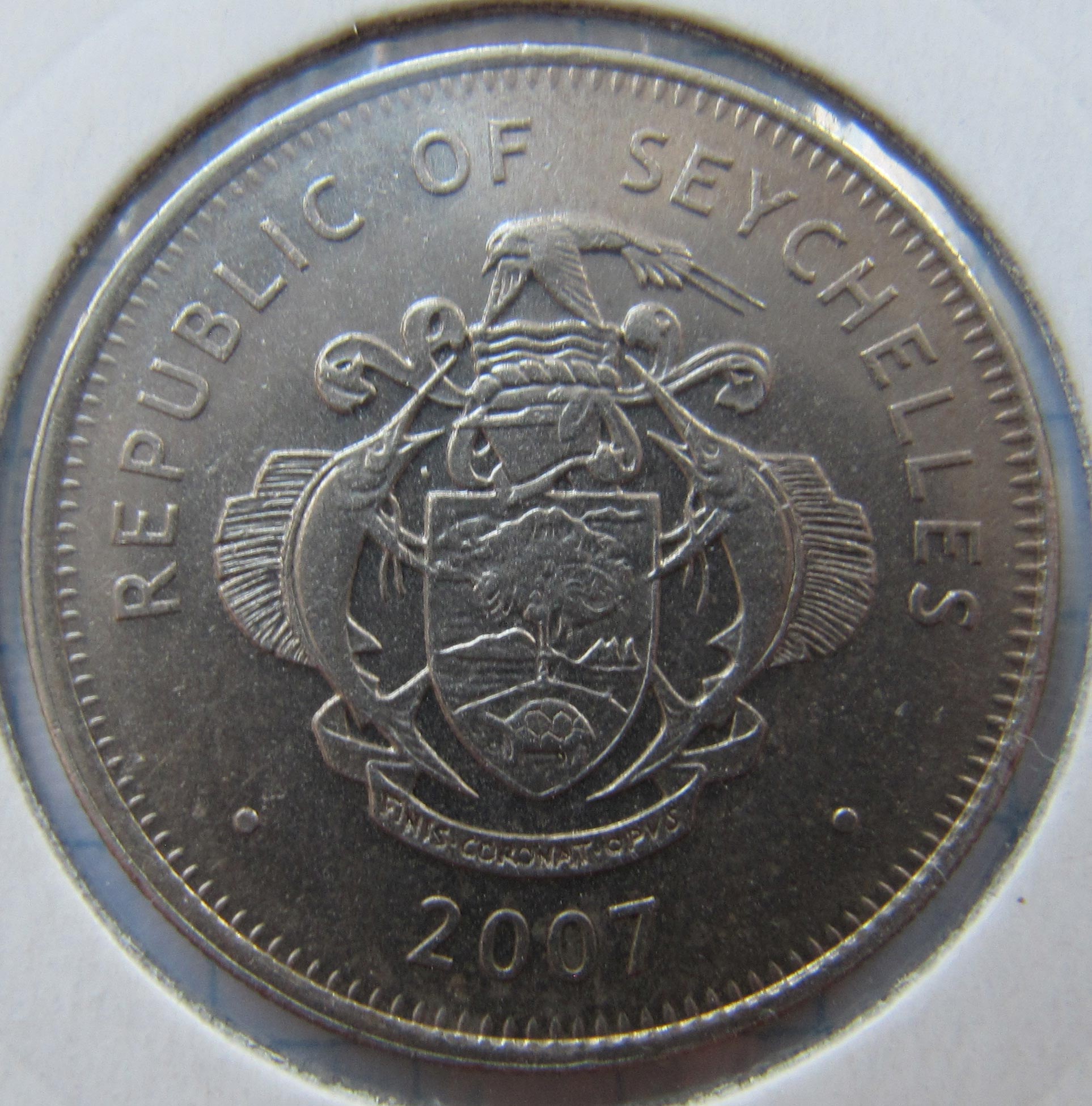 Реверс:герб Сейшельських островів, нижче – рік карбування монети. По колу напис: REPUBLIC OF SEYCHELLES.