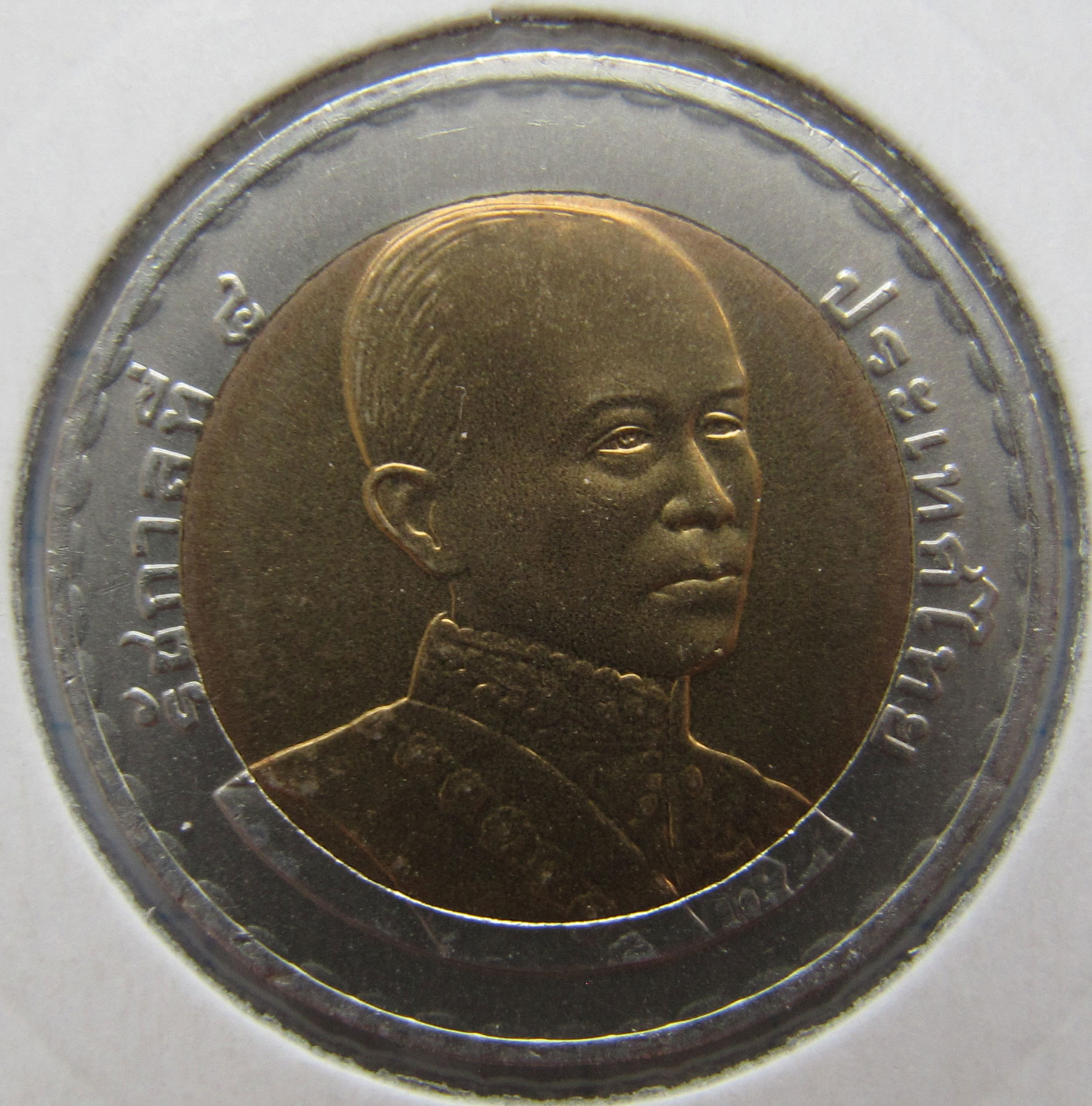 Официальная эмблема празднования 200-летия короля Рамы IV, снизу номинал, по кругу - надпись на тайском языке и год чеканки.