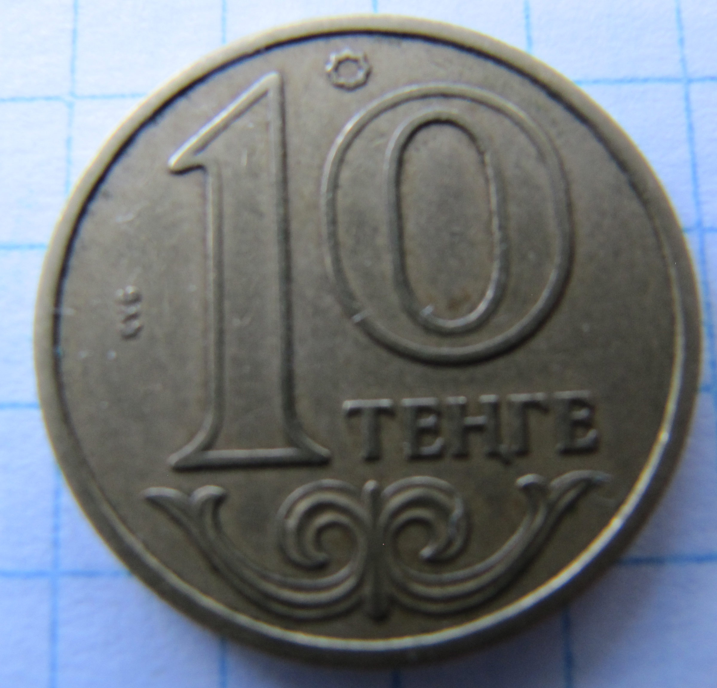 Аверс:номинал 10 ТЕНГЕ, снизу - элемент национального орнамента.