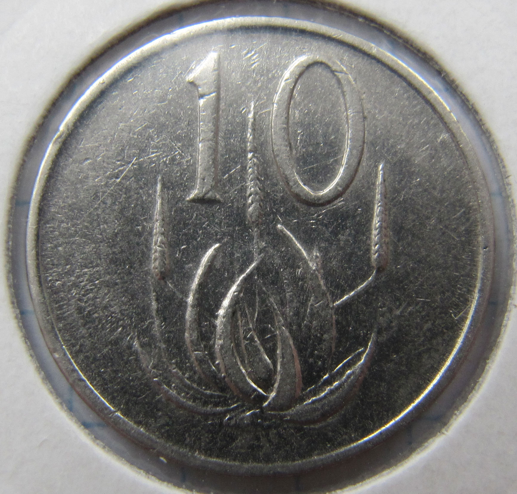 Реверс:герб ЮАР образца 1932-2000 гг. Название страны на английском SOUTH AFRICA и на языке африкаанс SUID-AFRIKA. Снизу - год чеканки монеты.