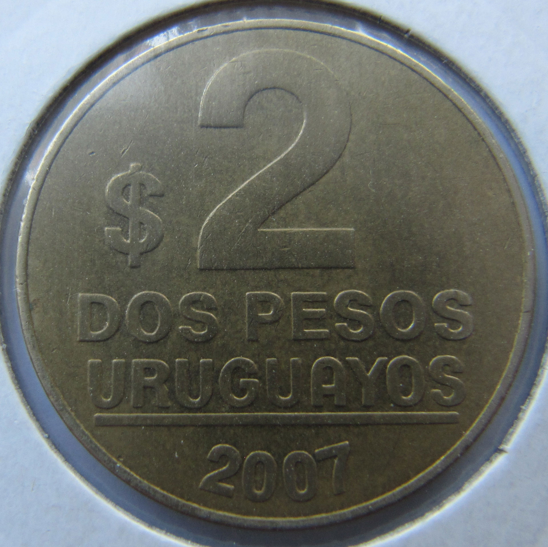 Аверс:номинал DOS PESOS URUGUAYOS и год чеканки монеты.