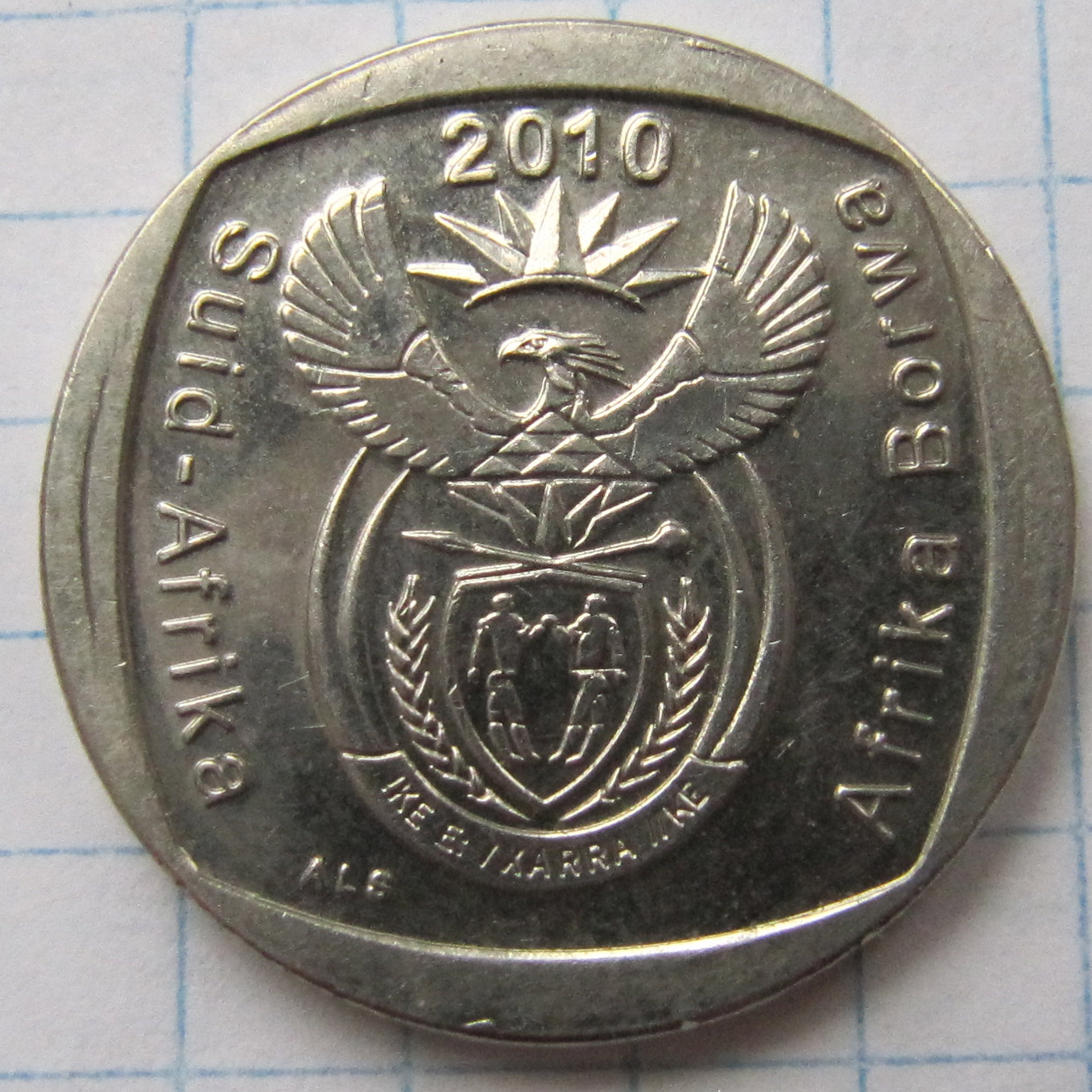 Реверс:новый герб ЮАР. Название страны на языке африкаанс Suid-Afrika и сесото Afrika Borwa. Сверху - год чеканки монеты.