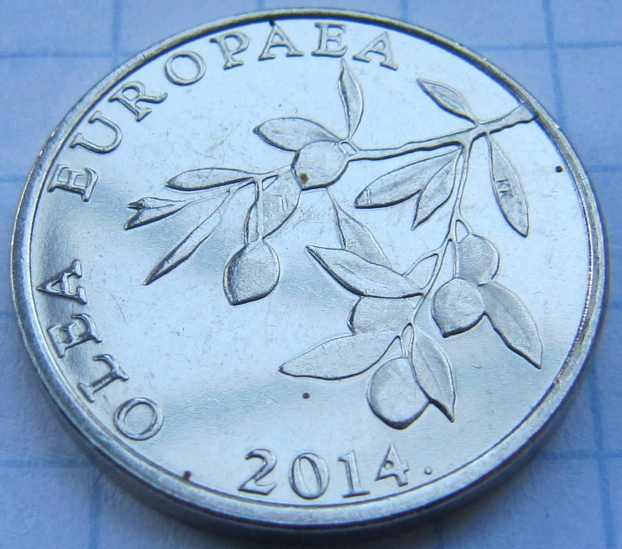 Реверс:в центре ветка оливы обыкновенной, снизу год чеканки, на латыни: OLEA EUROPAEA.