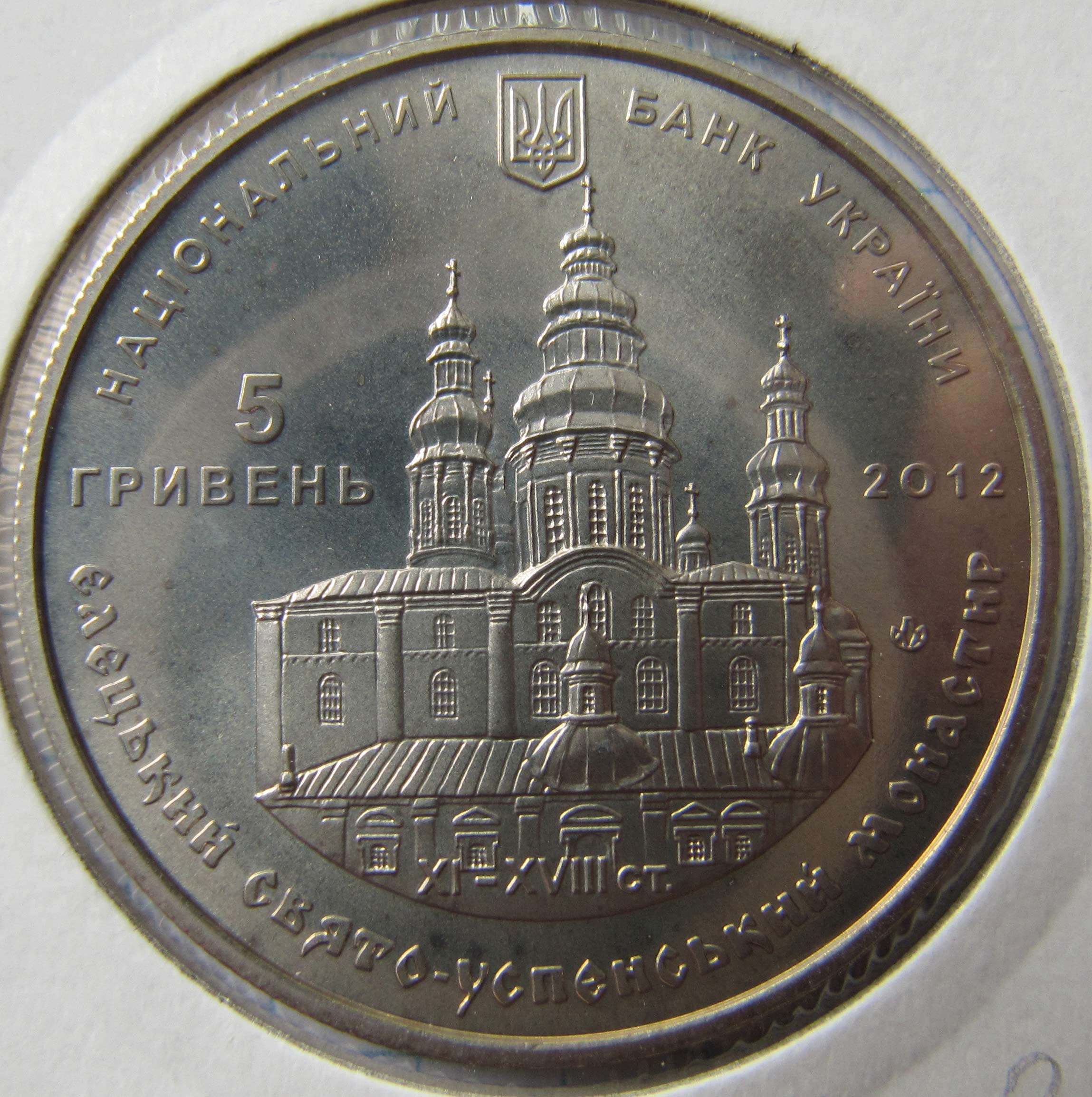 Аверс:изображен Успенский собор, на фоне которого внизу надпись "XI - XVIII ст.", слева от собора - номинал 5 ГРИВЕНЬ, справа - год чеканки монеты. Вверху - малый Государственный герб Украины и по кругу надписи: "НАЦІОНАЛЬНИЙ БАНК УКРАЇНИ" (вверху), "ЄЛЕЦЬКИЙ СВЯТО-УСПЕНСЬКИЙ МОНАСТИР" (внизу).