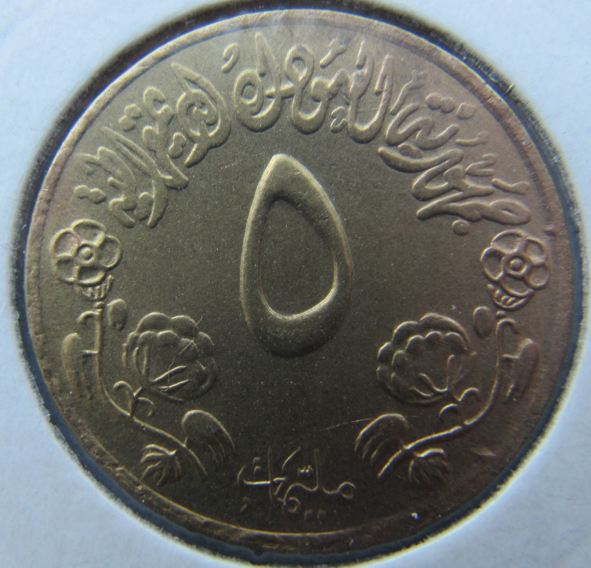 Реверс:герб Судану всередині вінка з колосків, зверху легенда арабською мовою, знизу рік карбування монети за Григоріанським стилем та на Хіджрі.