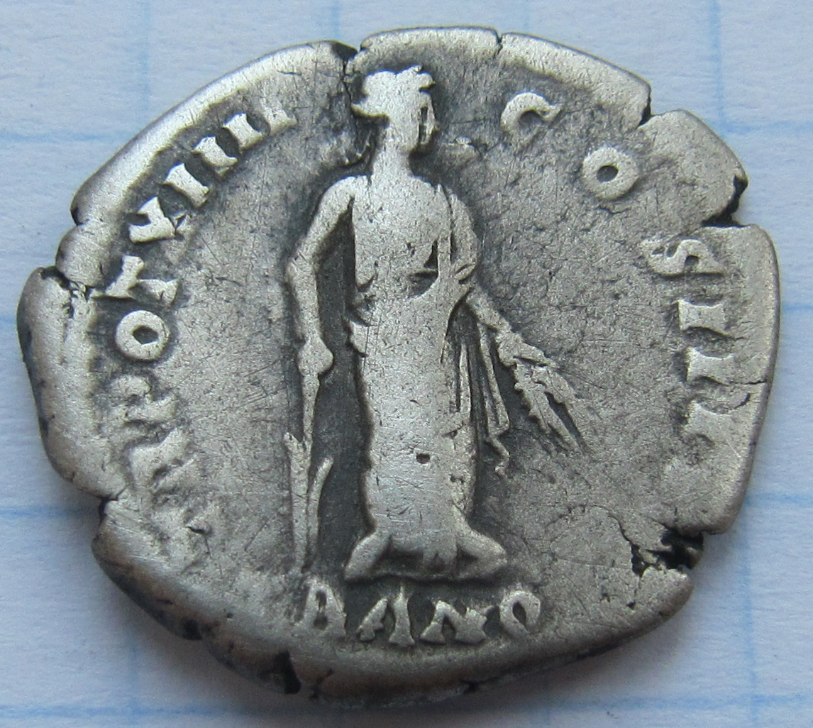 Реверс:TR POT XIIII COS IIII. Транквіліта стоїть вправо, тримає кермо і два кукурудзяні качани. Знизу напис: TRANQ.